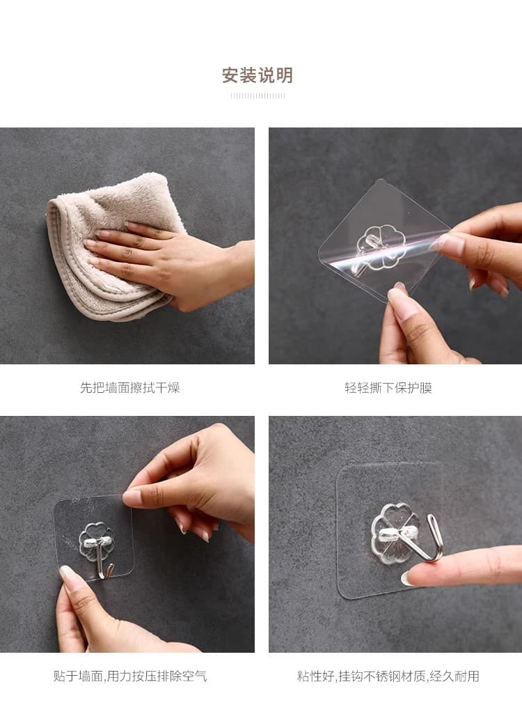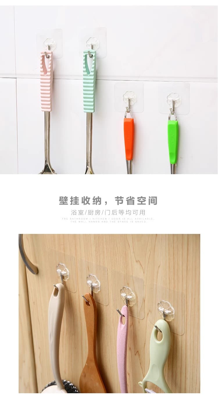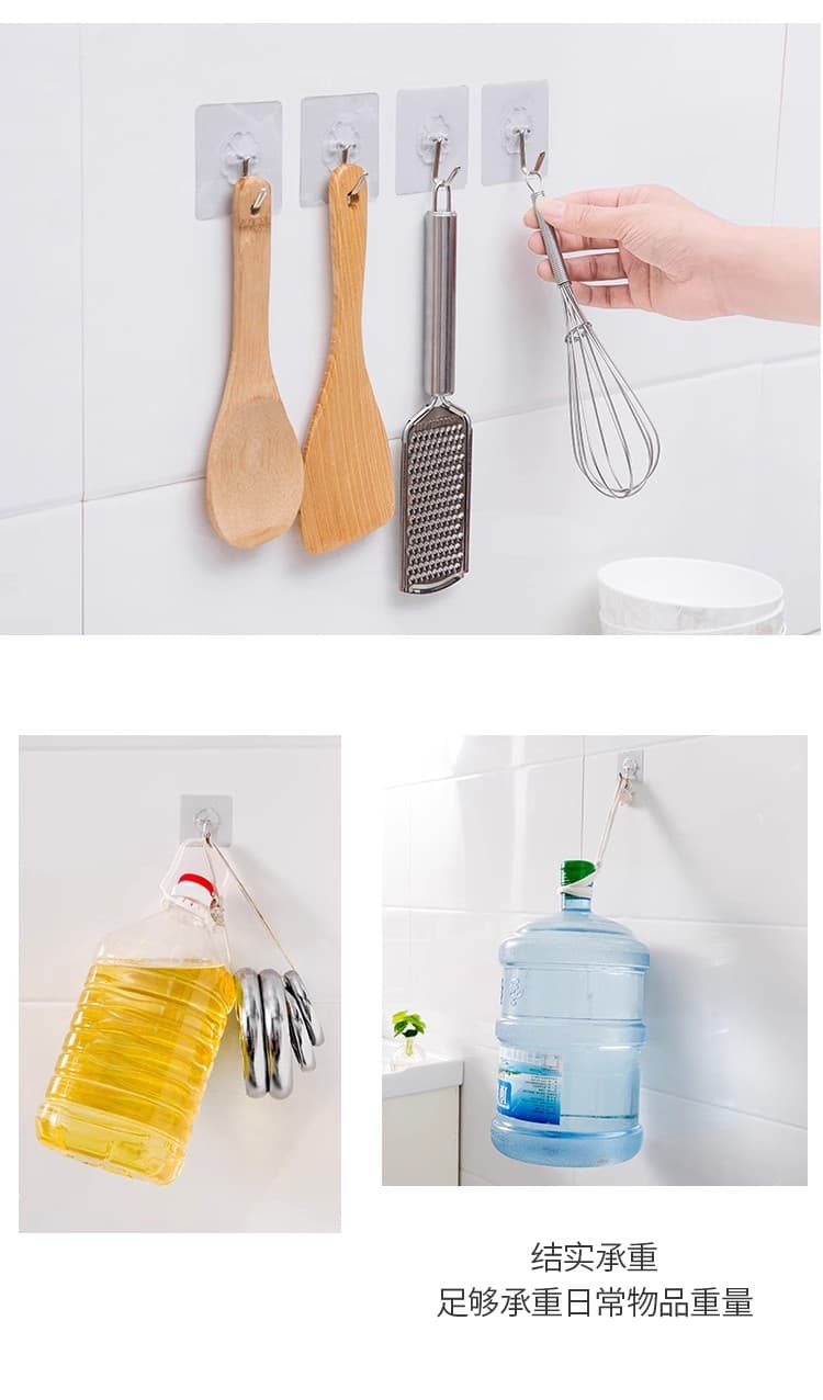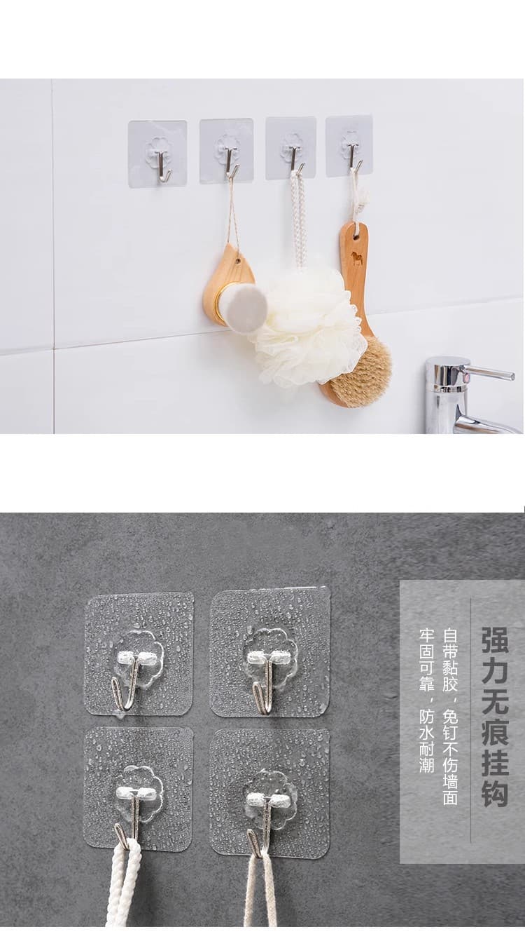 20个装免钉无痕挂钩强力粘胶透明墙壁壁挂衣服挂钩厨房创意防水粘钩钩子
