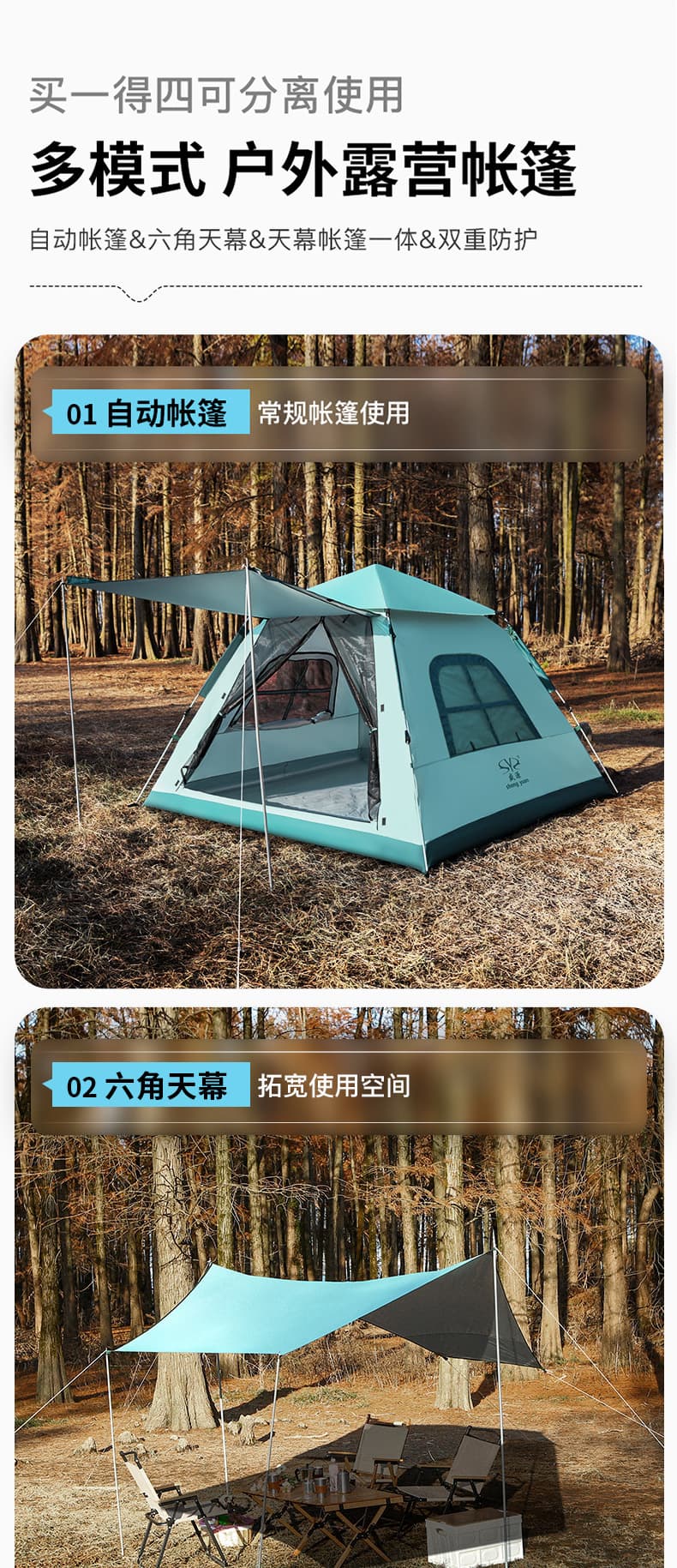 盛源帐篷户外便携式折叠天幕一体全自动野营露营帐篷加厚防晒防雨