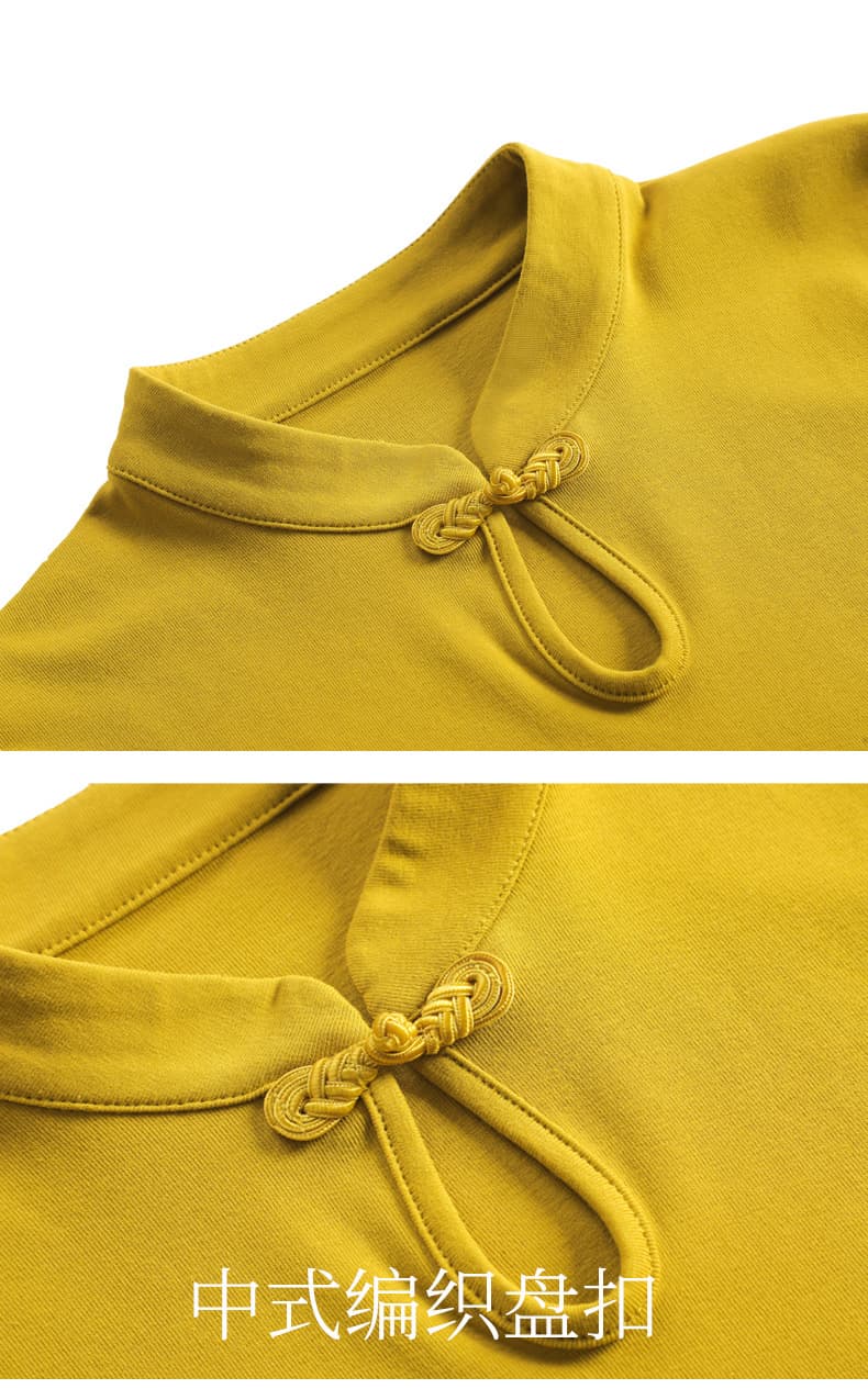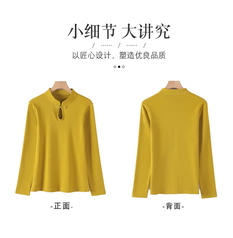 新中式纯棉立领盘扣上衣女国风改良长袖打底衫秋冬修身黑色t恤女