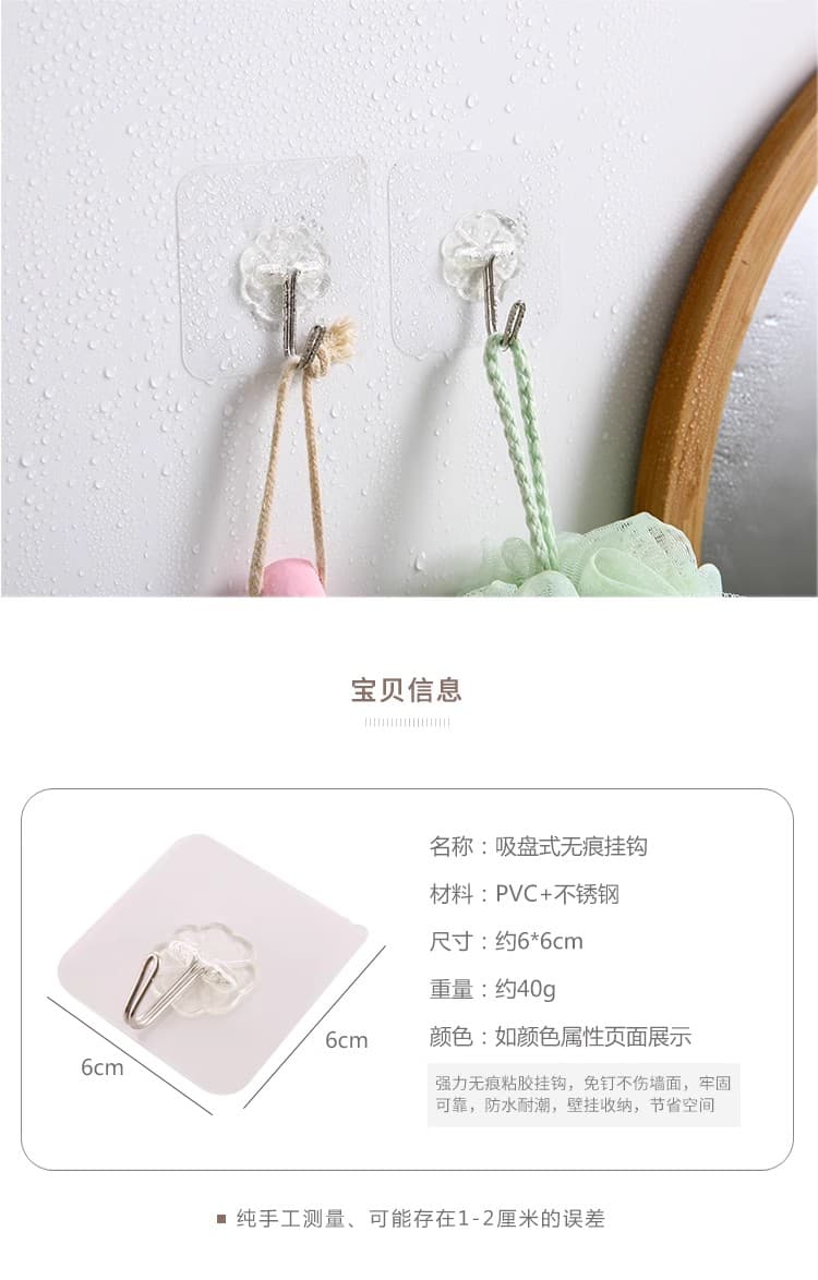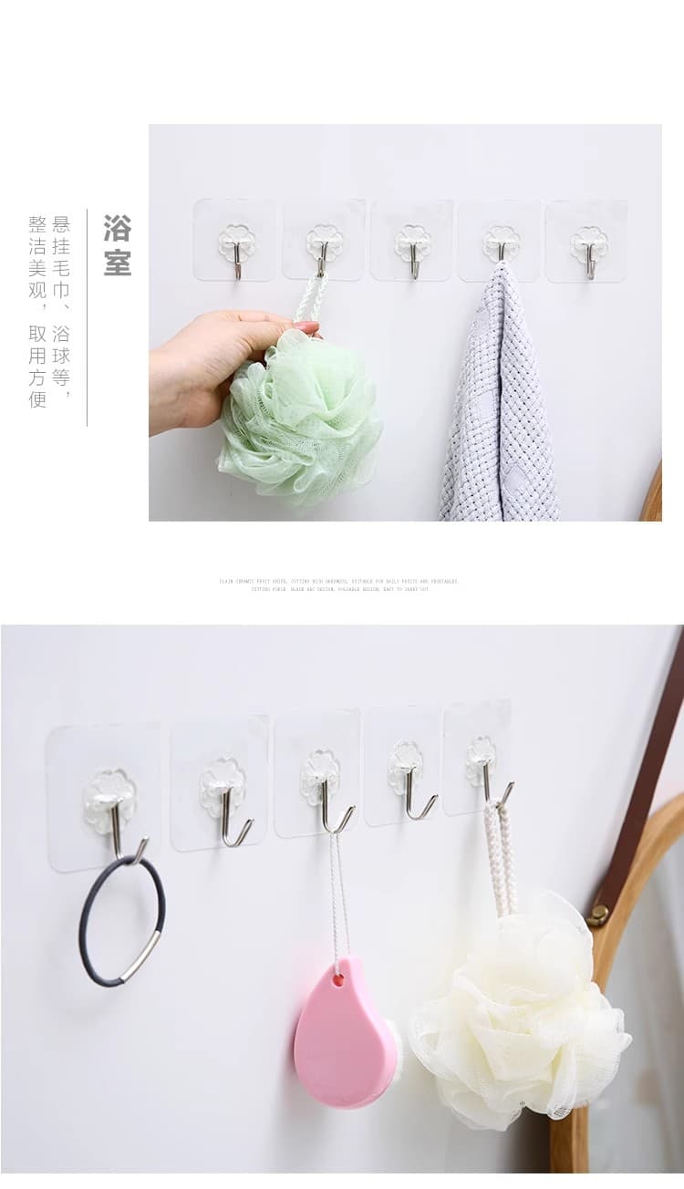 20个装免钉无痕挂钩强力粘胶透明墙壁壁挂衣服挂钩厨房创意防水粘钩钩子