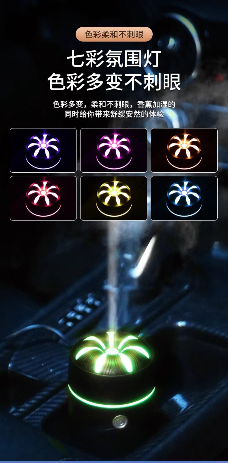 车载加湿器小型家用桌面静音七彩氛围灯车用便携大雾量香薰加湿器