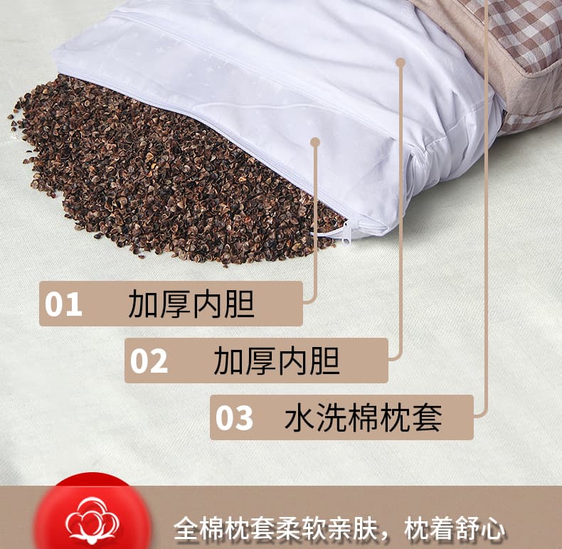 荞麦枕头男护颈椎枕芯学生宿舍助睡眠荞麦皮壳大人硬整头家用成人