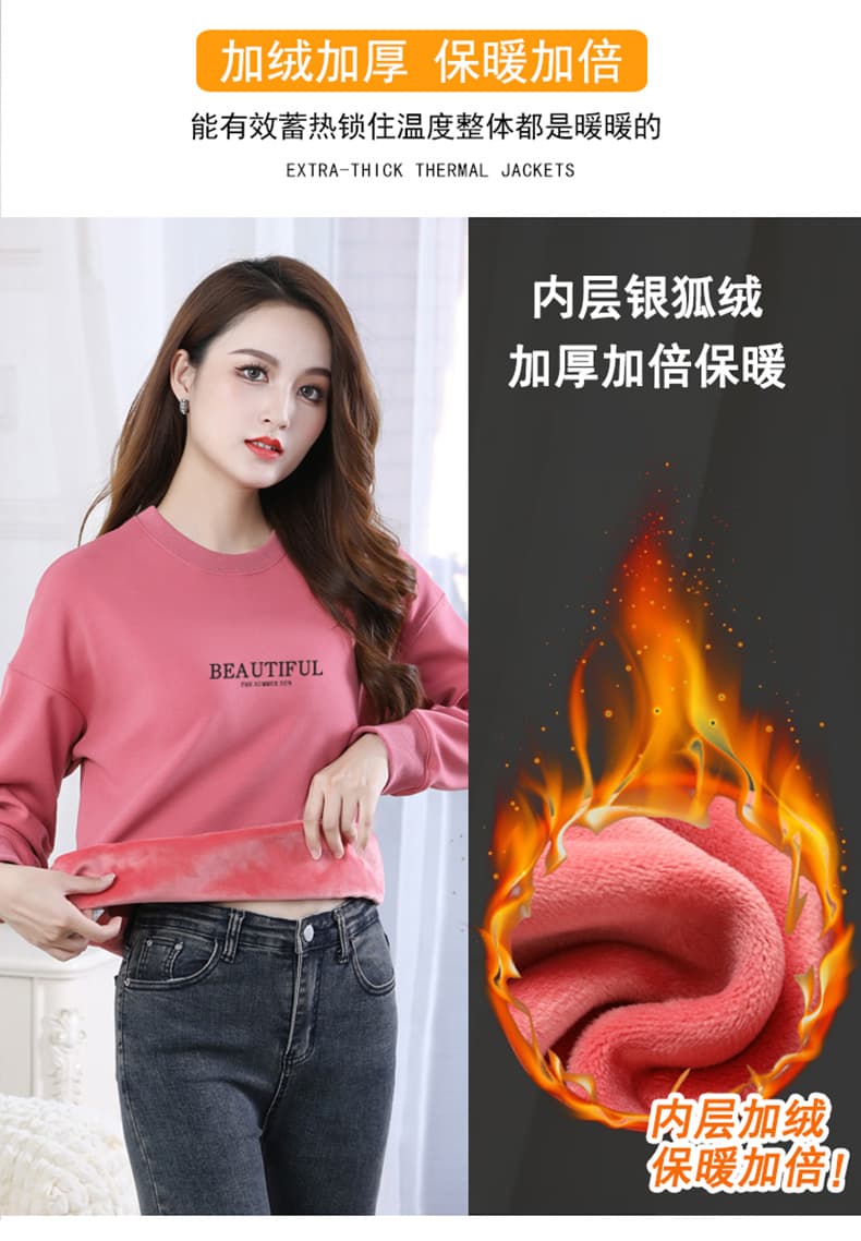 卫衣女加绒加厚2022新款秋冬季宽松ins潮圆领无帽百搭外套上衣服