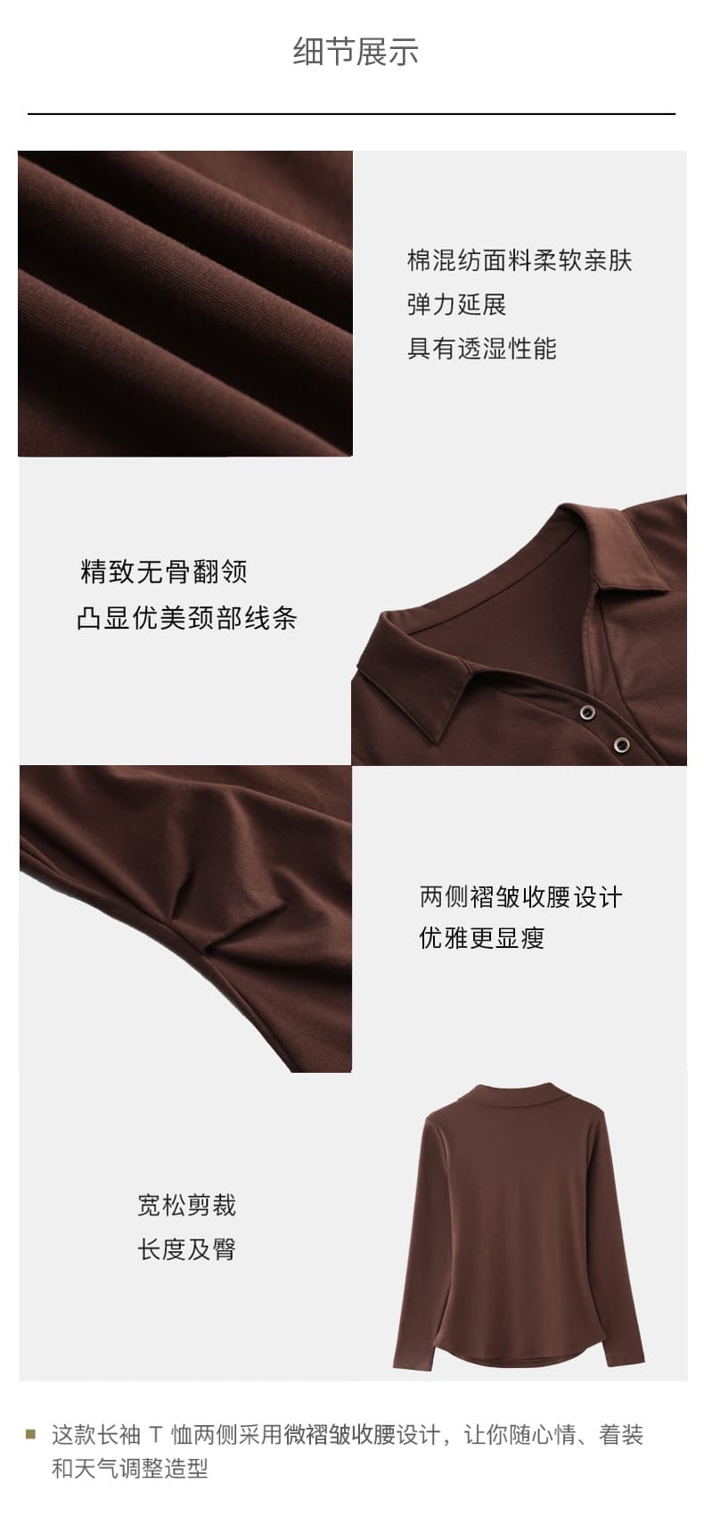 纯棉有领长袖t恤女新款春季洋气宽松翻领收腰上衣打底衫外穿